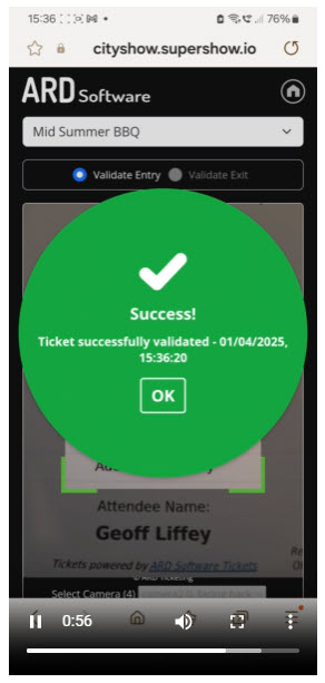 - Ticket has already been validated - note tickets can only be scanned once to prevent them being shared