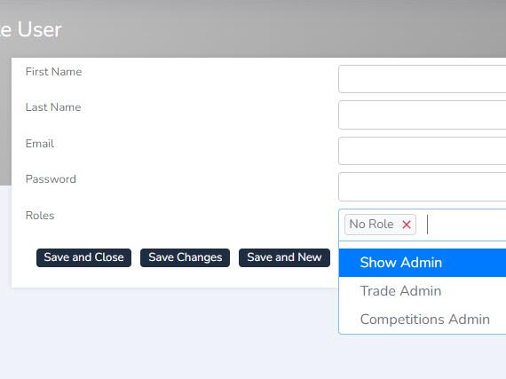 Eg. a Show Admin can assign a Competition Admin role (only Competitions section access. However the Competition Admin cannot assign a higher access level role, such as the Show Admin role (access to all required areas).
